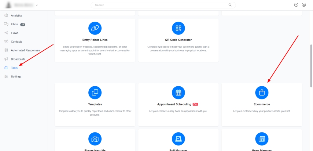 Manage your E-commerce settings (Payment settings, Checkout settings, Shipping settings, Abandoned Cart settings, Open hours, and many more.
